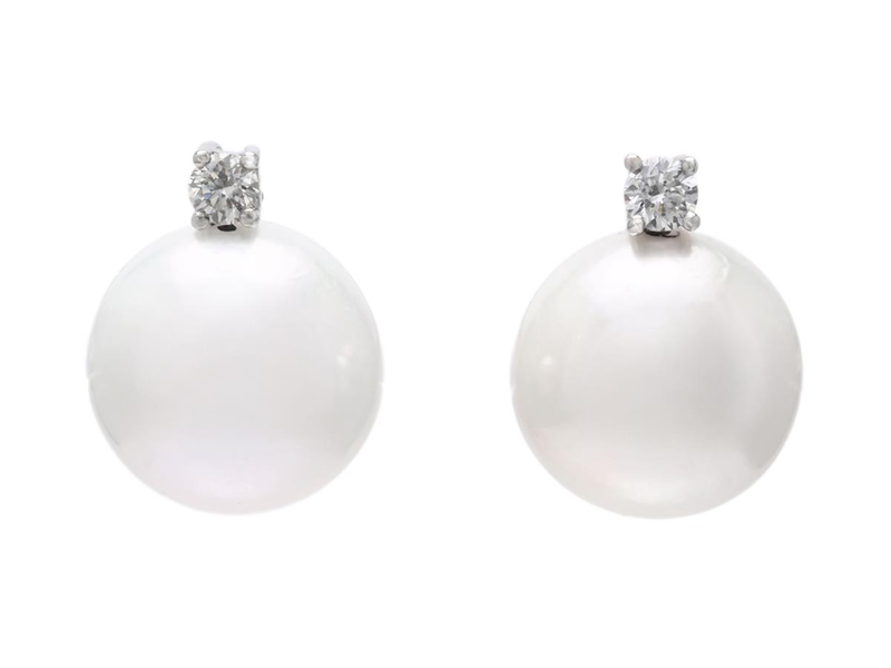 PEARL EARRINGS, 18K white gold, cultured pearls 13 mm, 2 brilliant cut diamonds approx. 0,28 ctw, approx. W-Cr/SI, weight 9,3 g, pushback.