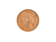 COIN, 21,6K gold, 10 Kronor, 1880, Oscar II, quality approx. 1+, diameter 18 mm, weight 4,5 g.