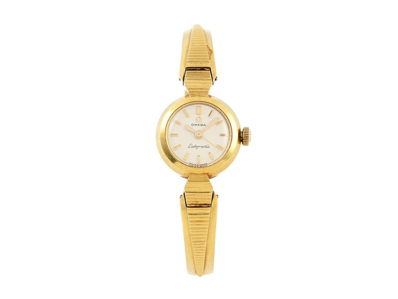 OMEGA, Ladymatic, Cal 455, Serial no. 15680660, Case no. SC 7067 GY / 217500, ladies´ wristwatch, 18 mm, 18K gold, self winding, plastic crystal, integrated bracelet, total weight 25,9 grams, approx. 1957.