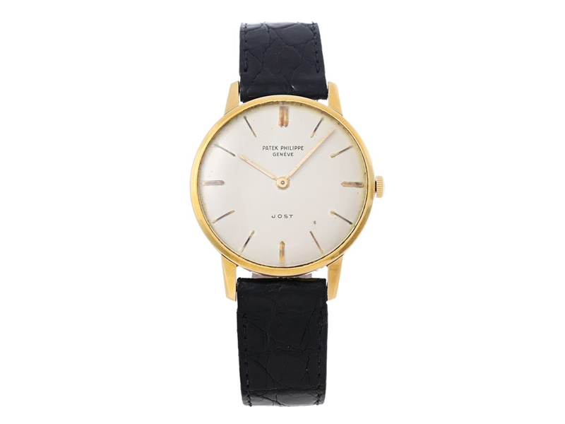 PATEK PHILIPPE, Geneva, Calatrava, "Jost", Cal 23-300, Serial no. 789682, Ref no. 2599, Case no. 2624544, men´s wristwatch, 33 mm, 18K gold, manual winding, plastic crystal, leather strap, original buckle in 18K gold, certificate, July 1962.