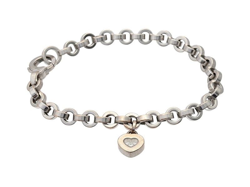 CHOPARD, bracelet, 18K white gold, charm in shape of one heart with a brilliant cut diamond approx. 0,03 ct, serial no 2440423, ref. no 85/3460, length 20 cm, weight 27,8 g, signs of wear.