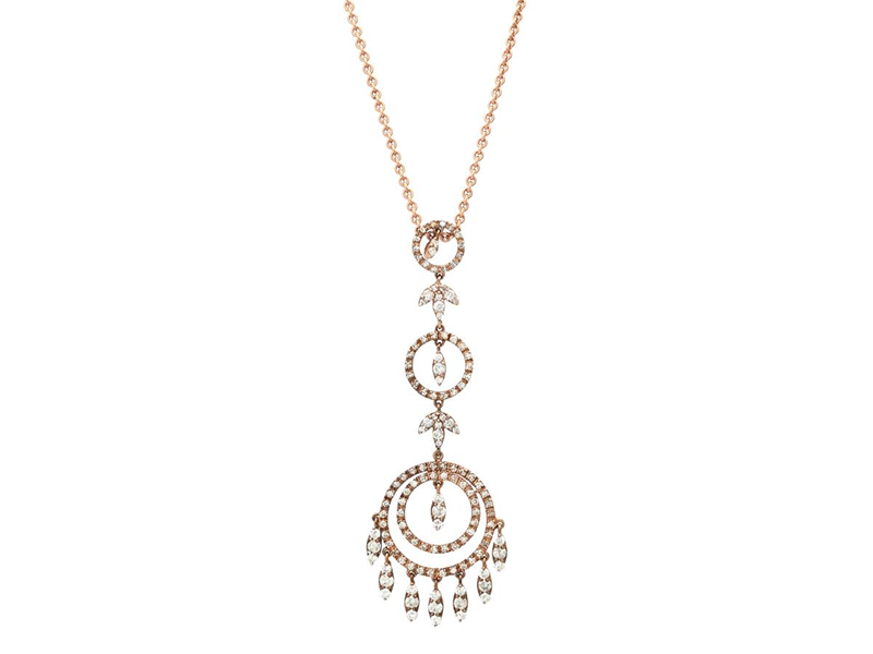 PENDANT/CHAIN, 18K rose gold, partly rose gilt white gold, 133 brilliant cut diamonds approx. 1,75 ctw, approx. TW-Approx./VS-P, the pendant´s height 67 mm, length 42 cm, weight 14,1 g.