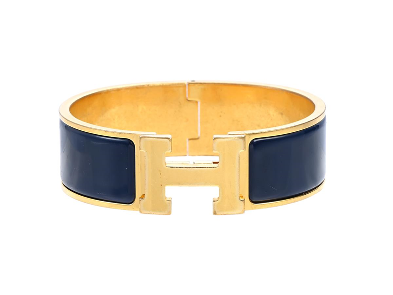 BANGLE, HERMÈS, Clic Clac H Bracelet, dark blue enamel, gold plated, diameter 6 cm, width 2 cm, jewellery pouch, scratched.