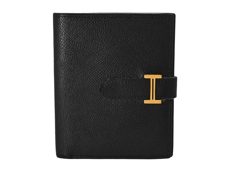 WALLET, HERMÈS, Bearn Compact Wallet, black Epsom, gold-tone hardware, 12x10 cm, Marked B19 J in square, year 2006, zip, case, signs of wear.