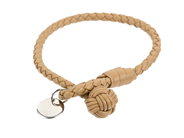 BRACELET, BOTTEGA VENETA, intrecciato, twined beige leather, silver-tone hardware, length 23 cm, diameter approx. 5 cm, jewellery pouch.