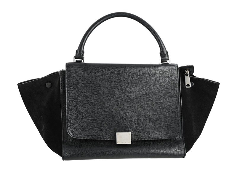 BAG, CELINE, Trapeze bag, black leather, black suede, silver-tone hardware, 30x23x17 cm, detachable shoulder strap, dustbag.
