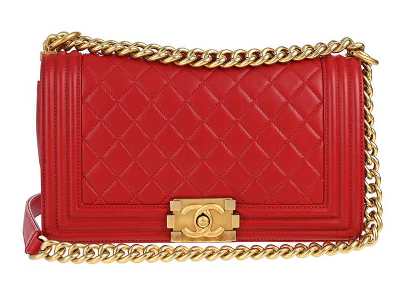 CHANEL, BAG, Boy Bag Medium, red quilted lambskin, gold-tone hardware, 25x14x8 cm, hologram-marked 23166857, year 2017, tag, certificate, dustbag. Very Good Condition.