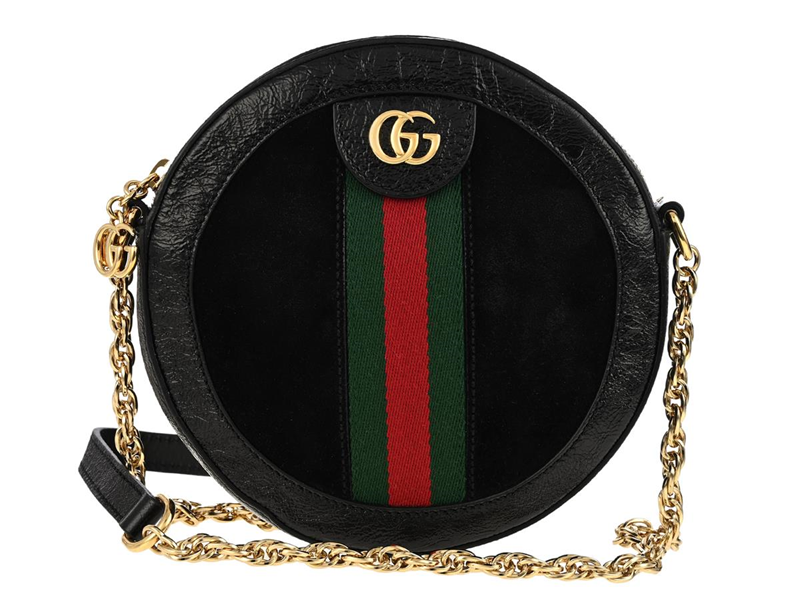 GUCCI, BAG, Ophidia Round Shoulder Bag, black leather, velvet, gold-tone hardware, green and red striped, 18x18x4,5 cm, dustbag. Very Good Condition.