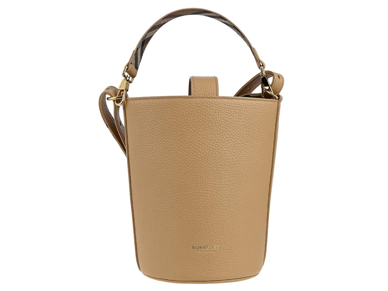 BURBERRY, BAG, Medium Bucket Bag in Light Almond, beige grained calfskin, gold-tone hardware, 14x20x13 cm, detachable shoulder strap, label, dustbag. Excellent Condition.