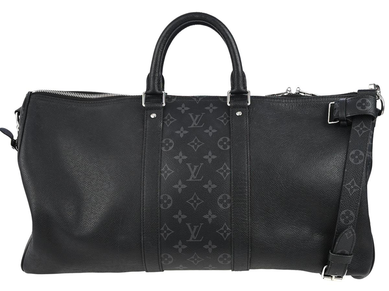 LOUIS VUITTON, BAG, Keepall 50 Bandouliere Taigarama, black monogram canvas, silver-tone hardware, 50x27x20 cm, made in France, detachable and adjustable shoulder strap, keys no 304 with dustbag, address tag, receipt from 2023, signs of wear on corners. Good Condition.