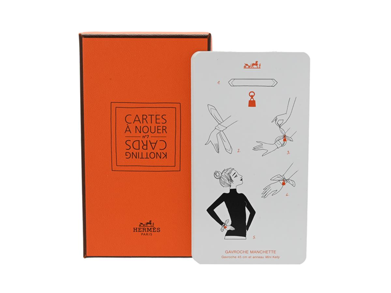 HERMÈS, CARD, Knotting Cards, how to tie a scarf, orange, 12x7 cm, original box. Very Good Condition.