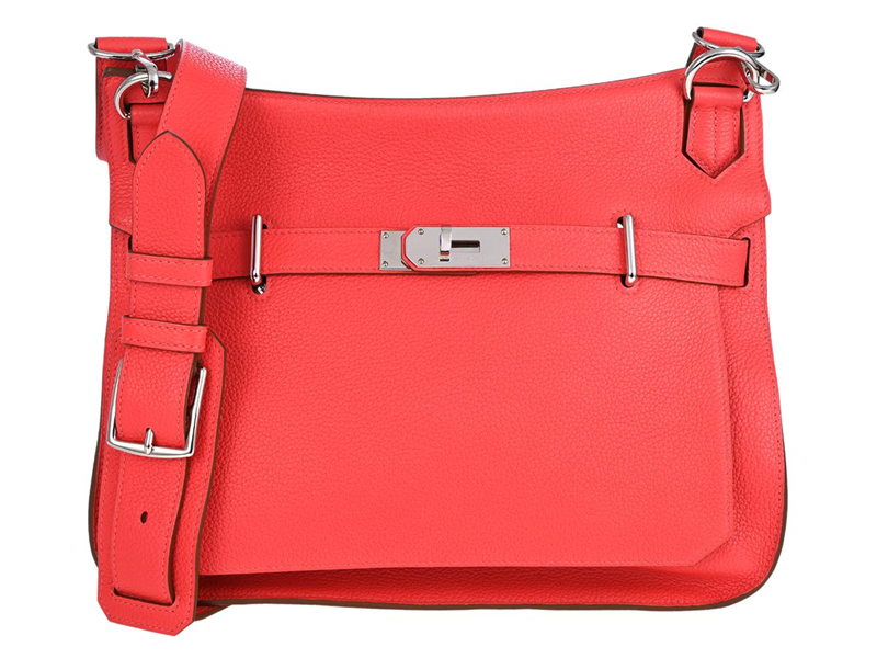HERMÈS, BAG, Jypsiere 34, coral Taurillon Clemence, silver-tone hardware, 34x28x15 cm, marked R in square, year 2014, detachable shoulder strap. Very Good Condition.