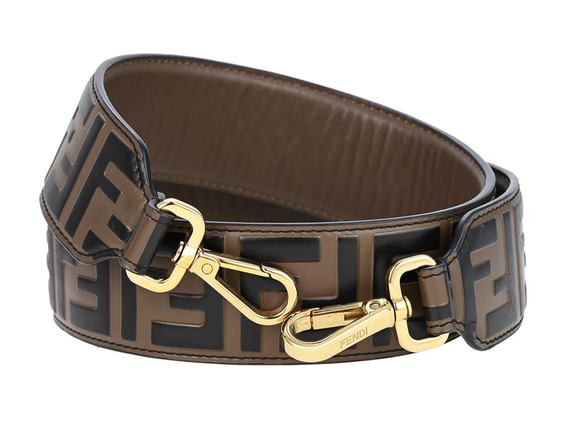 FENDI, SHOULDER STRAP, FF Zucca Strap You, brown, black leather, Embossed F, gold-tone hardware, 89x4,5 cm, dustbag. Good Condition.