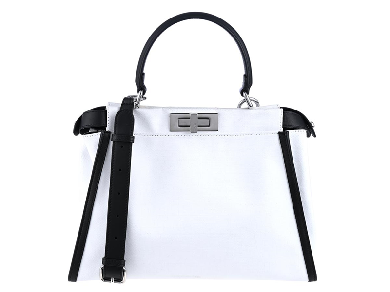 FENDI, BAG, Medium Peekaboo ISeeU Satchel, white, black leather, silver-tone hardware, 34,5x25x12 cm, detachable and adjustable shoulder strap, dustbag, plastic left on some hardware. Good Condition.