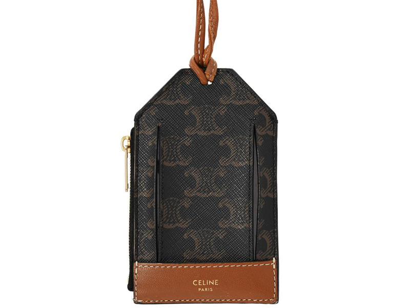 CELINE, CARD HOLDER, Card Holder Necklace, Triomphe Coated Canvas Claude, gold-tone hardware, 13x8 cm, receipt, dustbag, original box. Very good Condition.