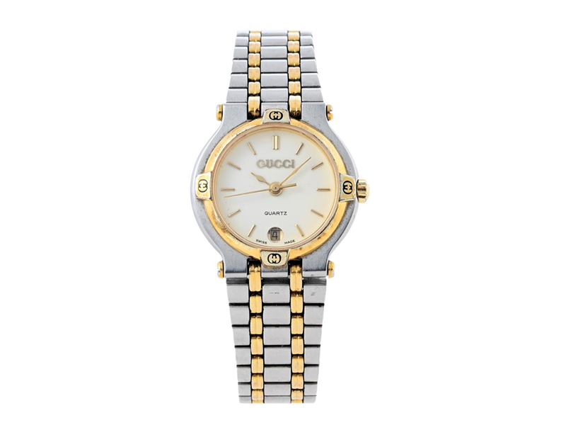 GUCCI, ladies´ wristwatch, 25 mm, Serial no. 072-720, Case no. 9000L, bicolour, quartz, mineral crystal, date, integrated original bracelet, length 165 mm, approx. 1988, box.