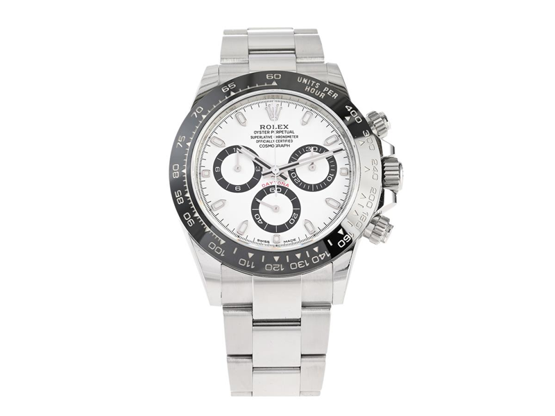 ROLEX, Oyster Perpetual, Cosmograph, Daytona, Chronometer, Ref no. 116500LN, Serial no. 57R17207, Cal 4130, Movement no. M448V146, Case no. 2100, chronograph, men´s wristwatch, 40 mm, steel, self winding, sapphire crystal (notch), black ceramic bezel (Cerachrom), Oysterlock bracelet, folding clasp (Easylink), Ref no. 78590-8UG/7JF+E1S, length 178 mm, approx. 2018.