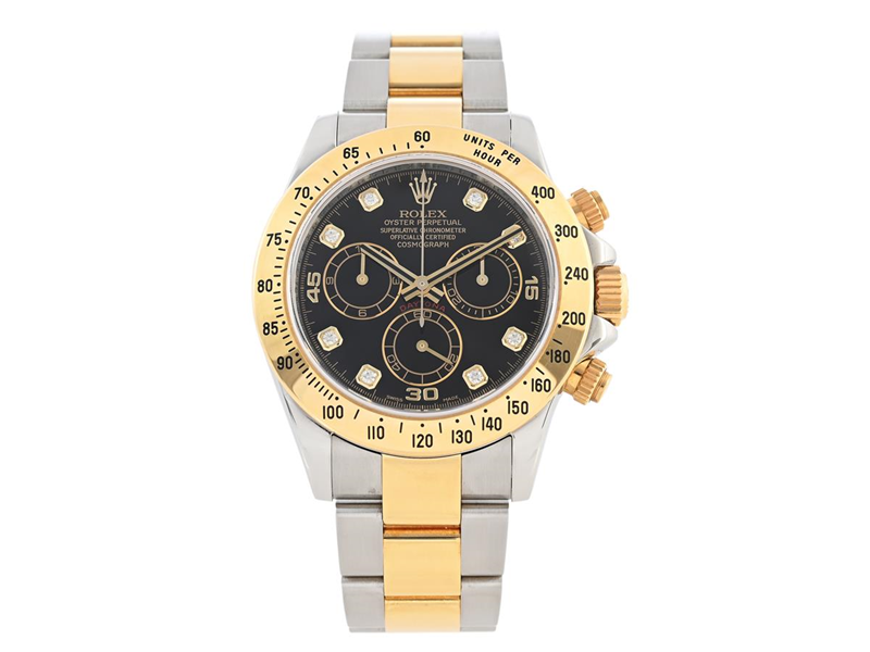 ROLEX, Oyster Perpetual, Cosmograph, Daytona, Chronometer, Ref no. 116523, Serial no. M146077, Cal 4130, Movement no. C 0284938, Case no. 2100, chronograph, men´s wristwatch, 40 mm, steel/gold, self winding, sapphire crystal, diamond dial (8 pcs. 8/8), Oysterlock bracelet, folding clasp (Easylink), Ref no. 78493-EO8, certificate, December 2007, box, paper box.