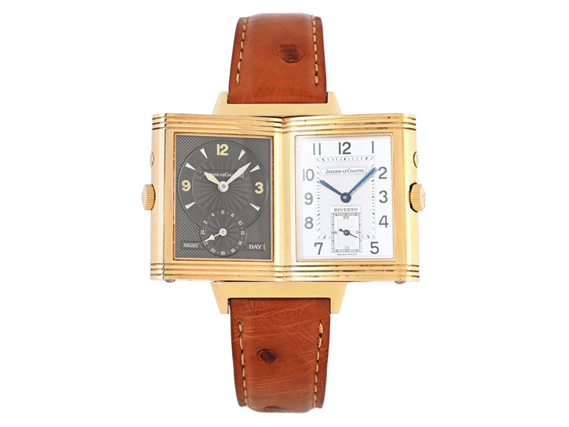 JAEGER-LE COULTRE, Reverso Duoface, Cal 854, Serial no. 1914266, Ref no. 270.240.544B, Case no. 270.2.54, men´s wristwatch, 26 x 36 (42) mm, 18K pink gold, manual winding, sapphire crystal, two dials, leather strap, folding clasp in 18K pink gold, approx. 1999.