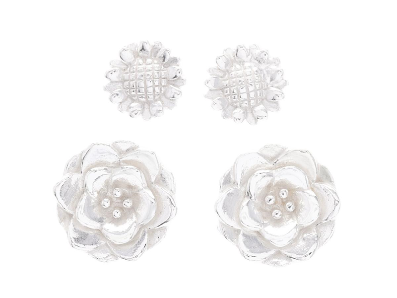EARRINGS, 2 pair, sterling silver, flowers, pushback, weight 2,1 g.