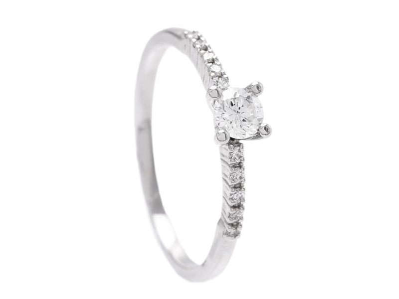 RING, 18K white gold, brilliant cut diamond approx. 0,24 ct, 10 brilliant cut diamonds approx. 0,08 ctw, approx. TW-TCr/SI-P, size 17,75 mm, weight 2,0 g, center stone has notch on the culet.