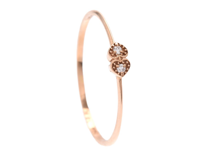 RING, 18K gold, 2 brilliant cut diamonds approx. 0,02 ctw, approx. TW/VS-SI, hearts, size 17,5 mm, weight 0,7 g, weak construction.