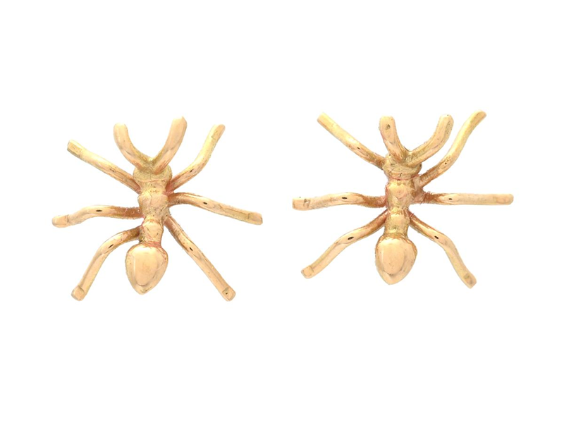 EARRINGS, 18K gold, ants, pushback, weight 1,5 g.