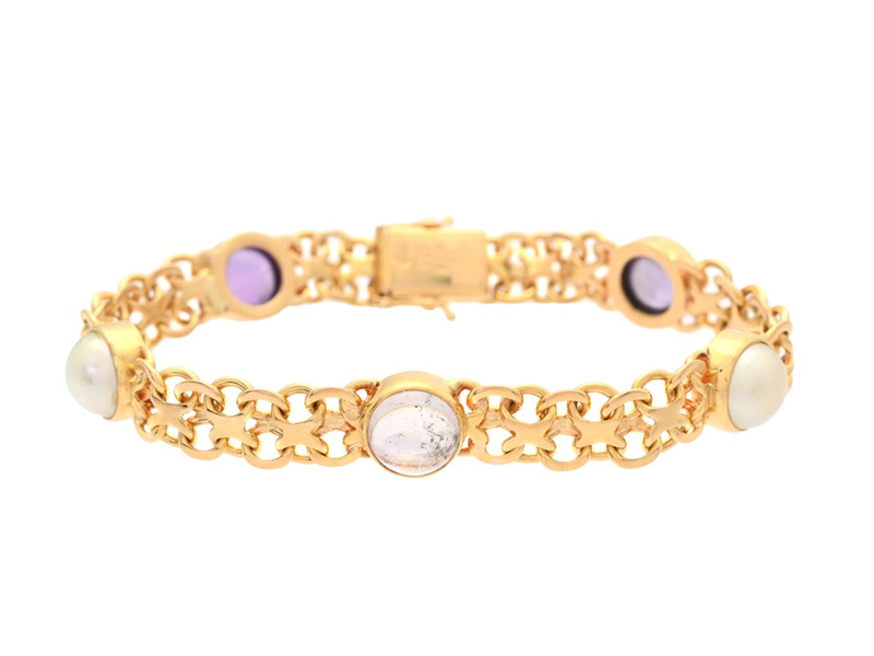 BRACELET, 18K gold, "x-link", cabochon cut amethysts, mabé pearls, length 19 cm, weight 22,3 g.
