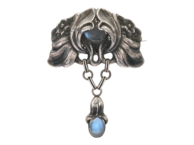 BERNAD HERTZ, brooch, silver, moonstone, year 1917, Jugend, measurements 60x80 mm, weight 19,8 g.