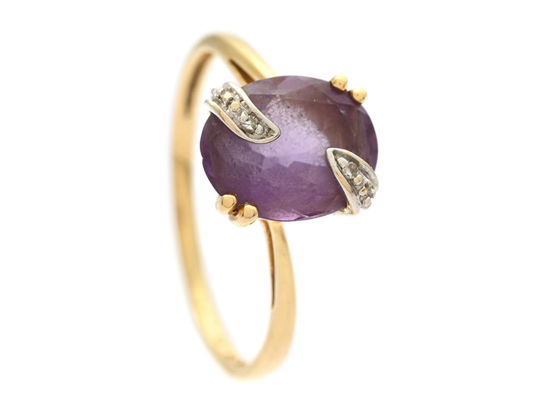 RING, 18K gold, amethyst, 2 single cut diamonds, size 18,25 mm, weight 2,5 g.