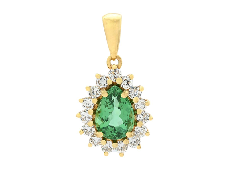 PENDANT, 18K gold, brilliant cut diamonds approx. 0,45 ctw, approx. TW/VS, pear shaped green tourmaline, height 21 mm, weight 2,4 g.