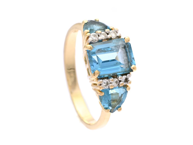 RING, 14K gold, blue topazes, 6 brilliant cut diamonds approx. 0,09 ctw, approx. W/SI, size 17,25 mm, weight 3,1 g.