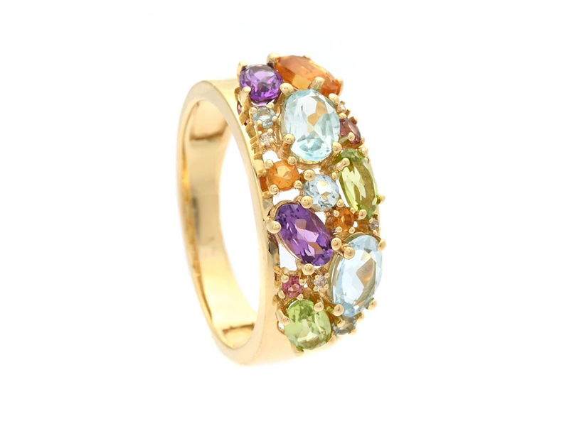 RING, 18K gold, peridots, tourmalines, amethyst, citrines, aquamarines, 5 brilliant cut diamonds approx. 0,03 ctw, Iduna, size 17,75 mm, weight 5,5 g.