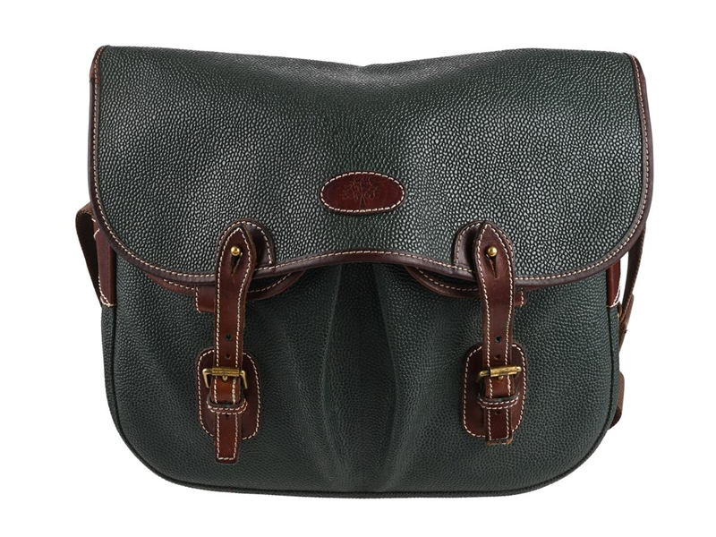 BAG, MULBERRY, Trout, green scotchgrain leather, brown leather, brass-coloured hardware, 34x30x10 cm, signs of wear.