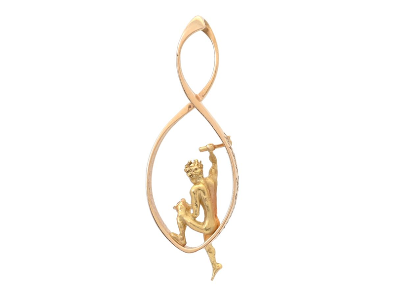 BJÖRN JÄGERSTIG, pendant, 18K gold, Sculptura, blacksmith forging, brilliant cut diamond approx. 0,05 ct, approx. TW/VS, Stockholm 1993, height 41 mm, weight 3,6 g.