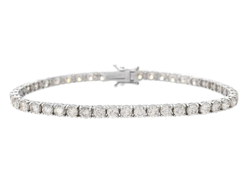 TENNIS BRACELET, 18K white gold, 46 brilliant cut diamonds approx. 7,27 ctw, approx. Cr-TCa(J-L)/SI-P, length 18 cm, weight 11,7 g, a few diamonds with notches at their culets.