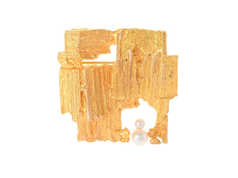 LAPPONIA, brooch, Etude, 14K gold, cultured pearls, Björn Weckström, Finland 1970, 35x35 mm, weight 13,8 g.