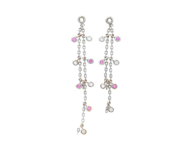 ATTACHMENTS, 18K white gold, brilliant cut diamonds, pink sapphires, height 45 mm, weight 2,4 g, case from Gunnar Fahlström.
