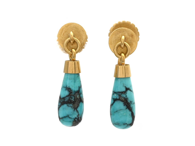 WIWEN NILSSON, earrings, 18K gold, turquoises, sign, Lund 1963, height weight 5,9 g, screwbacks, original case. (d)