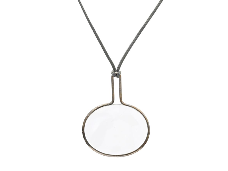 GEORG JENSEN, magnifying glass, no 400, sterling silver, glass, textile band with silver cap, design Vivianna Torun Bülow-Hübe, height 6 cm, weight 13,6 g, case.