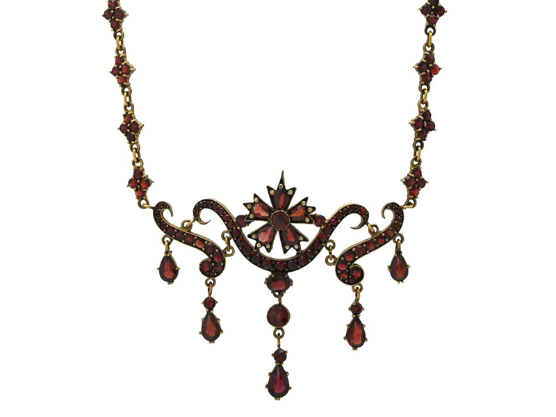 NECKLACE, yellow metal, garnets, length 43 cm, weight 18,8 g.