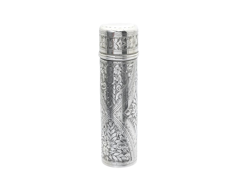 CIGAR HOLDER, sterling silver, John Edward Wilmot, Birmingham 1900, diameter 30 mm, height 110 mm, weight 38,4 g, dents.