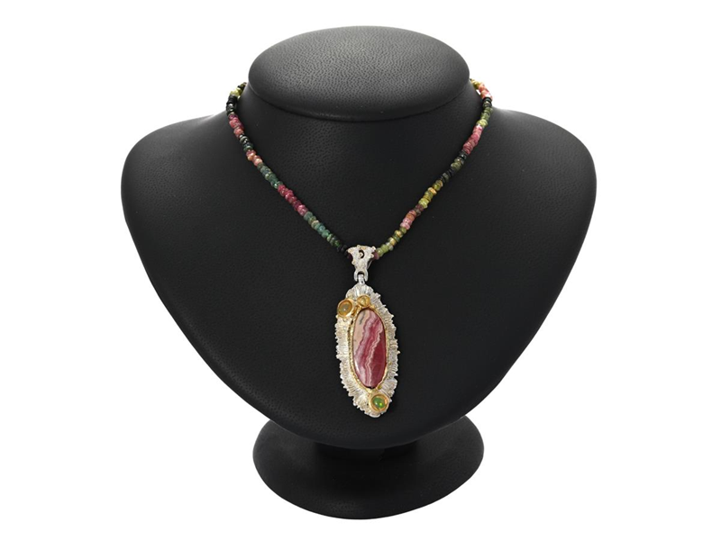 NECKLACE, sterling silver, partly gilt, tourmalines, rhodochrosite, opals, the pendant´s height 58 cm, adjustable length, weight 26,3 g.