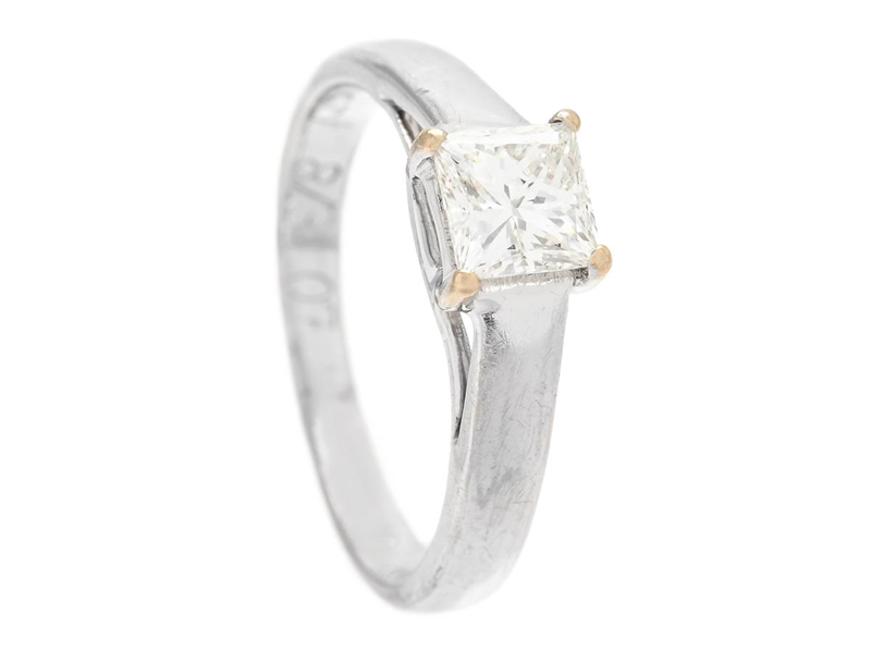 SOLITAIRE RING, 18K white gold, princess cut diamond approx. 0,65 ct, approx. TW(F)/VVS2, size 16,5 g, weight 3,2 g, engraving.