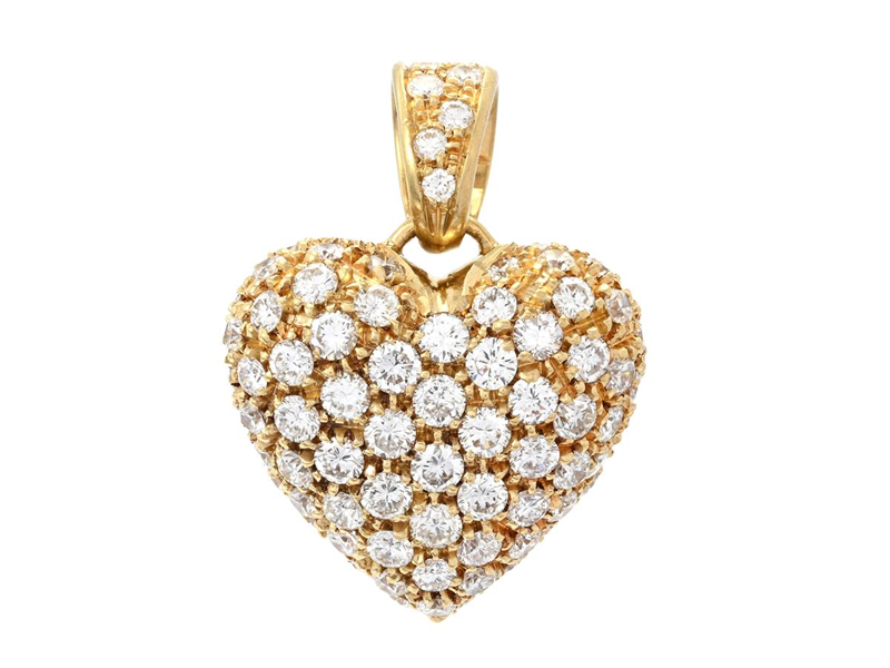 PENDANT, heart, 18K gold, 86 brilliant cut diamonds approx. 3,00 ctw, approx. TW-TCr/VS, height 27 mm, weight 10,6 g.