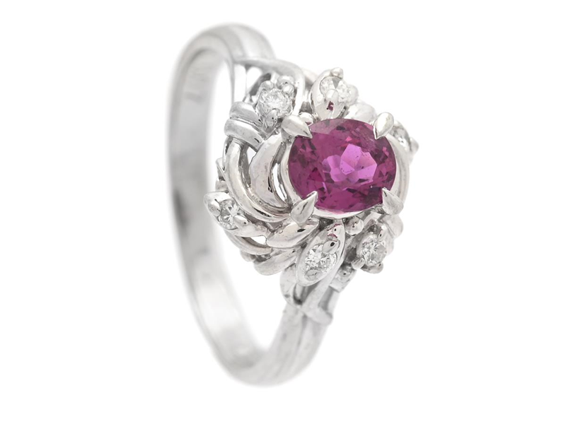 RING, platinum, oval-cut ruby 0,48 ct, 6 brilliant cut diamonds 0,07 ctw, approx. TW/VS-SI, size 15,25 mm, weight 3,9 g, GWLAB report.