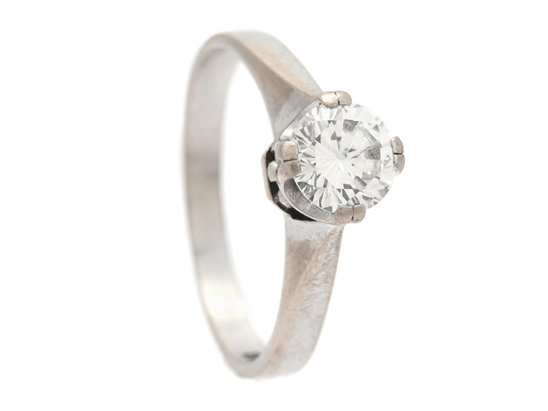 SOLITAIRE RING, 18K white gold, brilliant cut diamond 0,89 ct, approx. TW/F)/VS, Varberg 1987, size 18 mm, weight 4 g, damage at the girdle and notch on the culet.