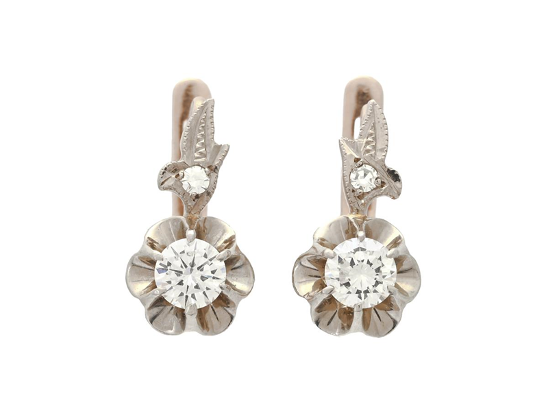 EARRINGS, 14K gold, 2 brilliant cut diamonds approx. 0,74 ctw, approx. W-TCr/VS, 2 åttkantslipadade diamonds approx. 0,06 ctw, height 16 mm, weight 4,4 g, pushback.