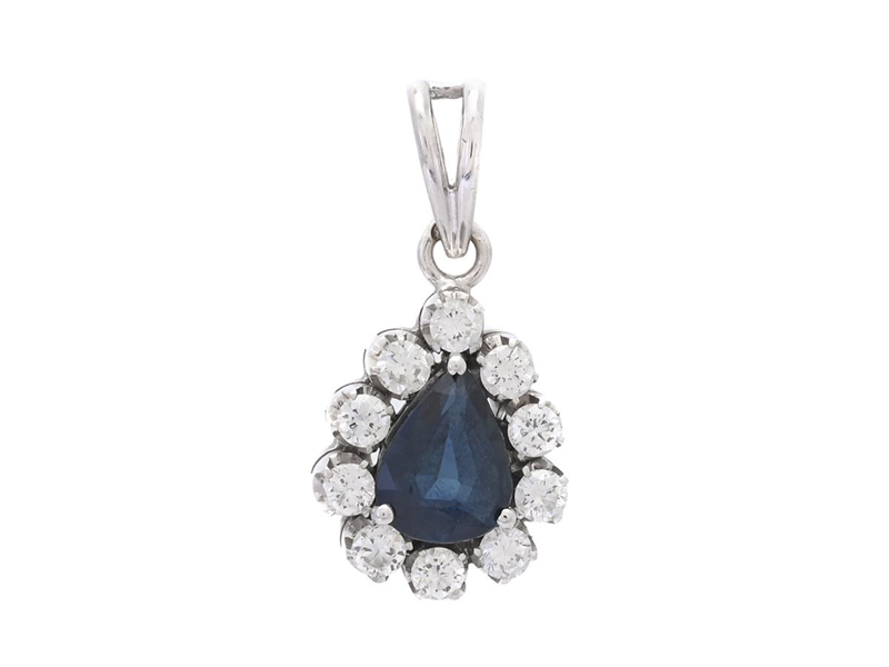 PENDANT, 18K white gold, pear shaped sapphire, 10 brilliant cut diamonds approx. 0,40 ctw, approx. TW/VS, height 20 mm, weight 2,8 g.