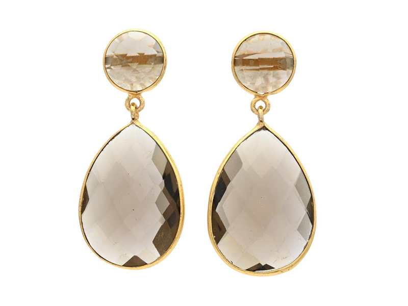 EARRINGS, gilt sterling silver, smoky quartz, pushback, weight 10,6 g.